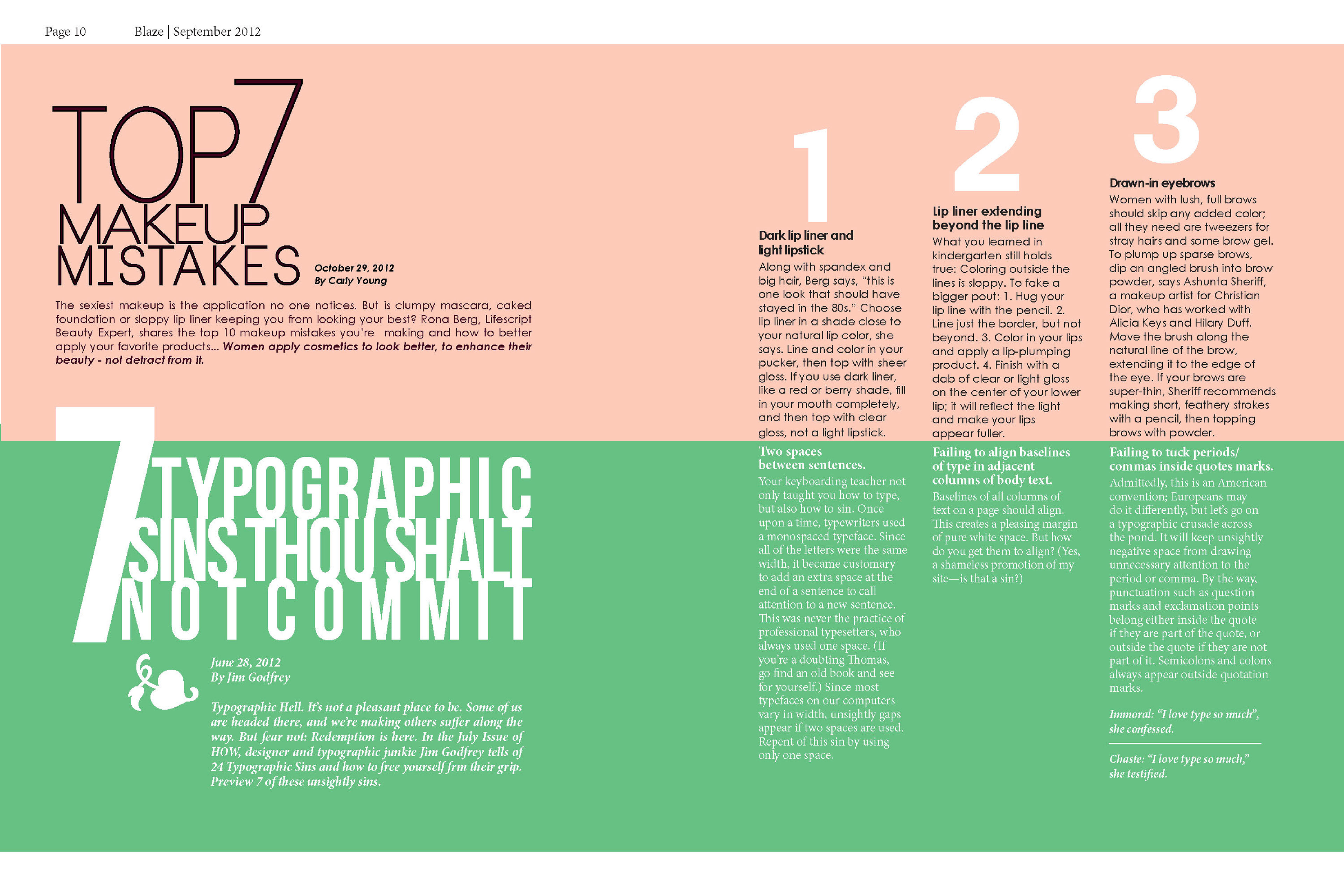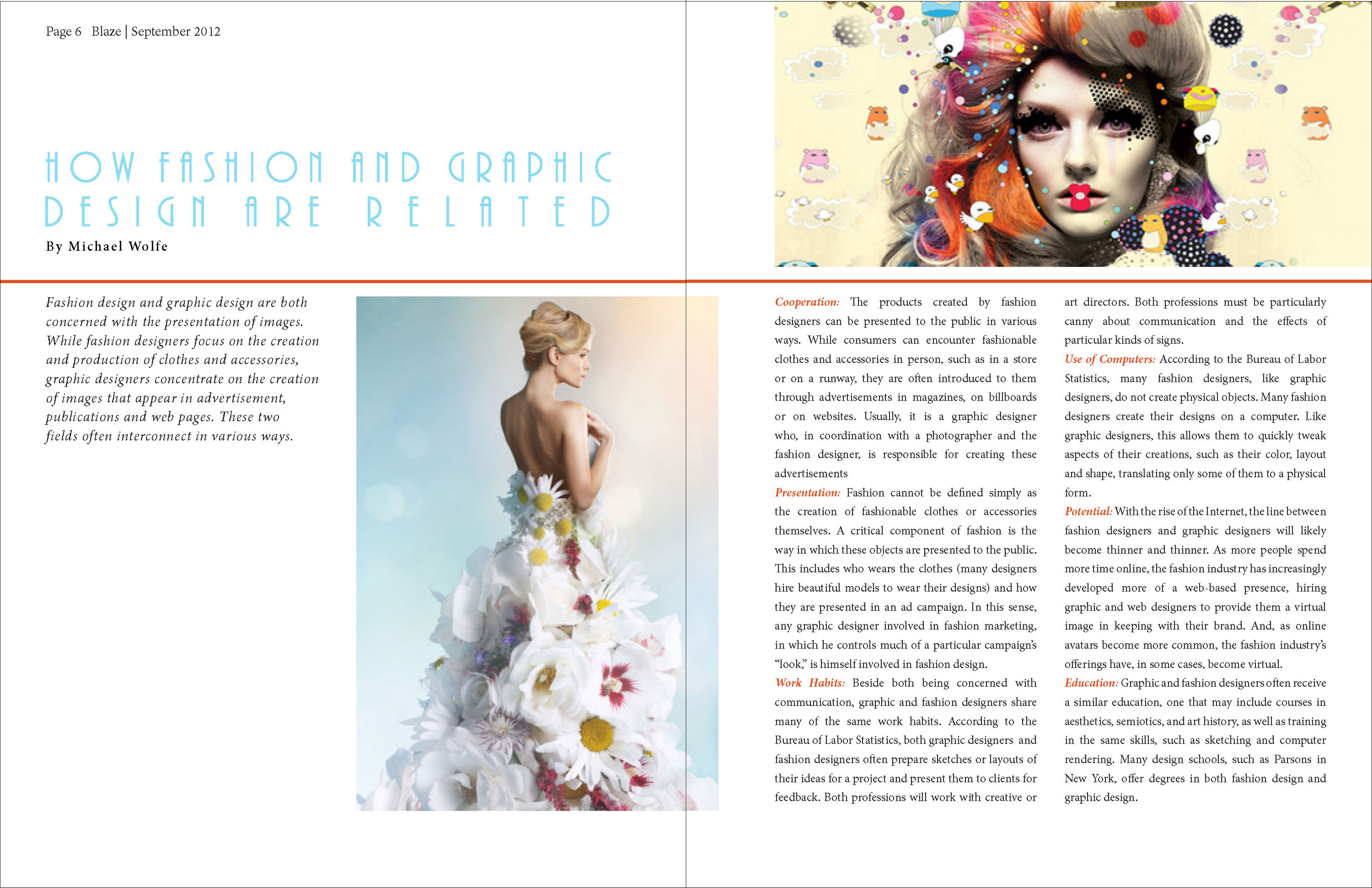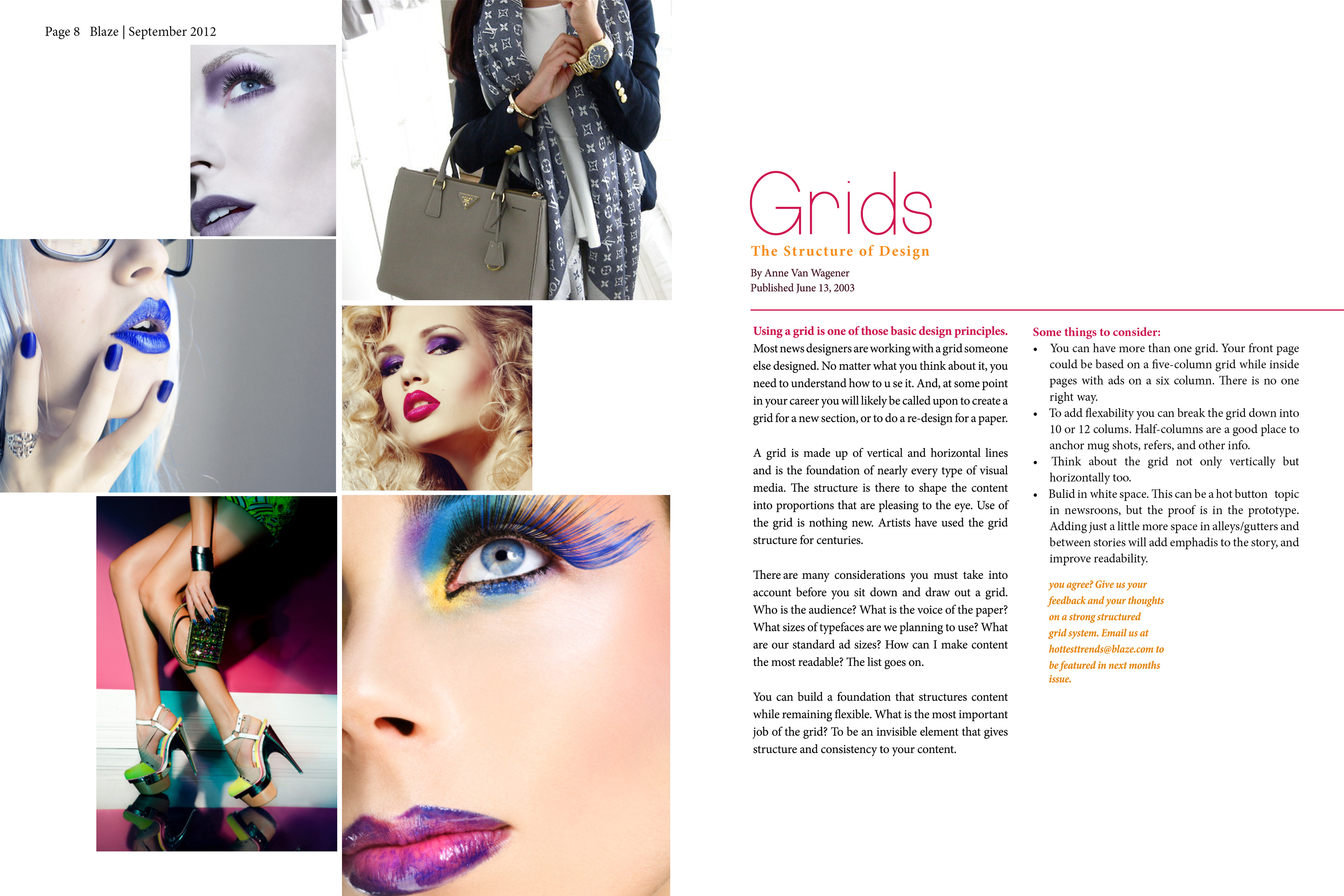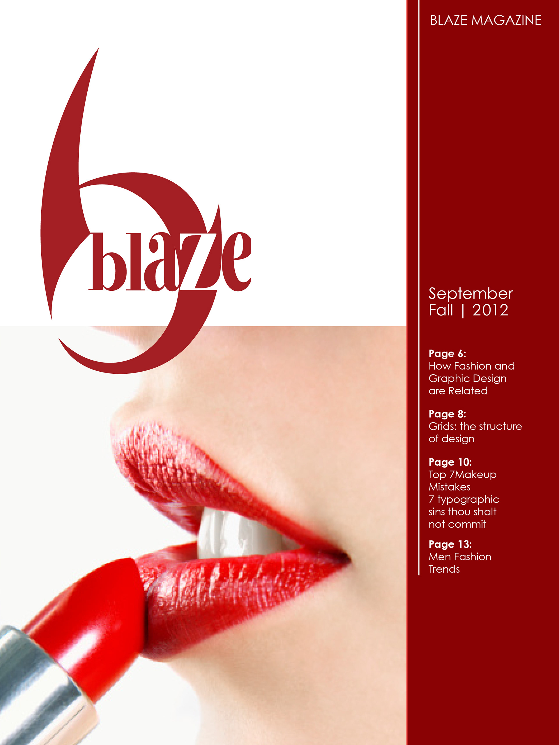 Blaze is a combination of femininity and graphic design trends intertwined within one magazine. Showcasing an array of grid systems and typography treatments.